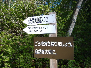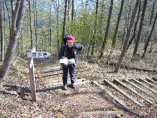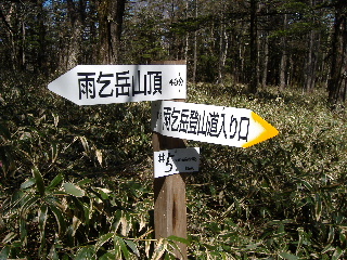 | ♯4の標識。正面が山頂方向のようです。山頂へは右に登り60分。 | ||||