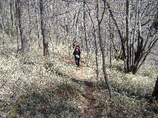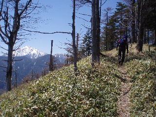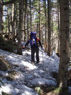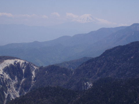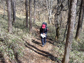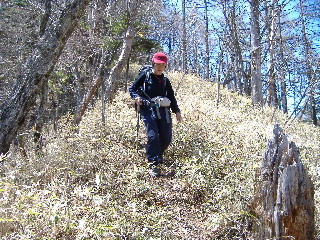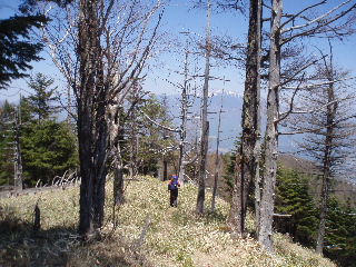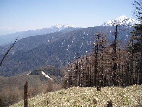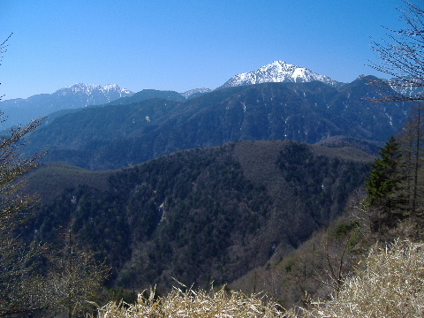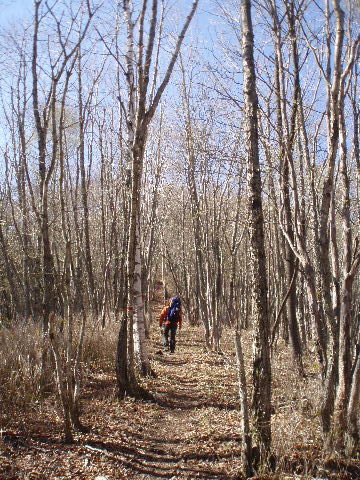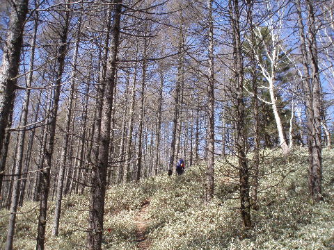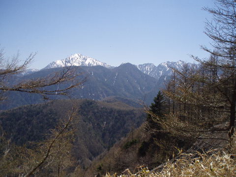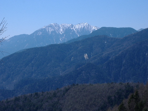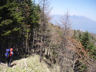 | 1600mくらいまで下がっても木の間から八ケ岳が見えてました。葉が出てくるまでの展望。 | ||||