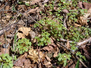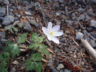 | 広葉樹林帯ですが下は熊笹に覆われ、登山道沿いに山野草はあまり見られませんでした。貴重なネコノメソウです。 | ||||