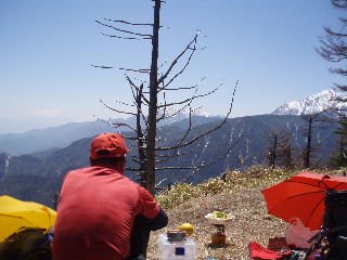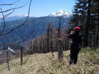 鳳凰三山、新芽前ならではの展望! 思わずオォ〜と声が出ます。 |