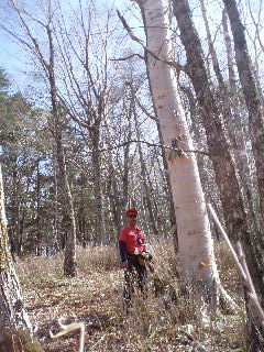 | 休憩していると大きな白樺の木に気付きました。こんなに太い木は珍しい! | ||||