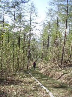 ♯1に戻り、元の登山道へ 落葉松林の新緑を眺めながら♪ |