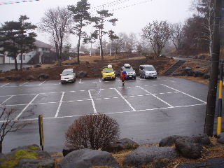 | 【12日:1日目】 富士見スキー場の駐車場に着いたのは明け方3時くらい。しとしと雨は朝まで降り続き、がっかりしました。 ゴルフ練習場の方の駐車場へ移動するとラッセル要員三名さまはもうご出発の後でした^_^; でも前回と打って変わって雪は無く雨。気温は5度と高めです。 |
