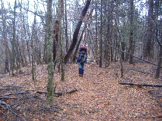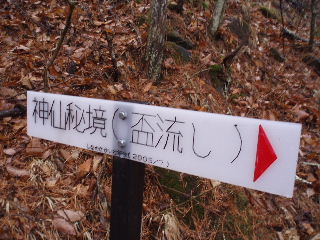 | 盃流し?何のことだろう・・・と、矢印の方に下りていきました。二人とも23キロのザックを担いで・・・登りなのに、ここでエネルギーを使っていいのだろうかとつぶやきながら沢の方に行ってみました。・・・沢の窪みにたまった水を盃に見立てたのかもしれません。 | |