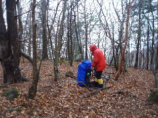 | 15:40 テント場に良さそうなところを見つけて整地します。15時を目処にしていましたが、ちょっと時間がかかってしまいました。 シャクナゲ庭園の少し下、2250mくらいの所ですが、ここを通過したら山頂まで平たいところはありませんでした^_^; |