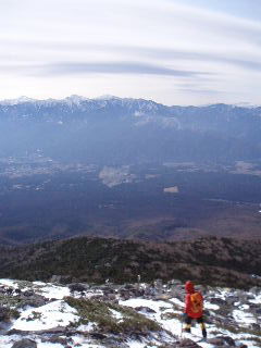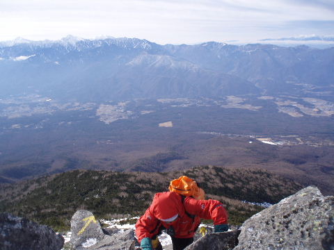 南アルプス、中央アルプスを背に登ります。 |