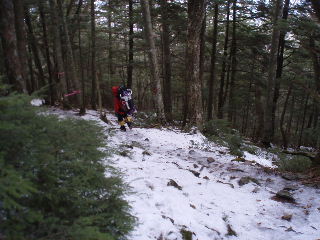 | 昨日気温が高く、夜からこの日にかけて氷点下になったため、登山道はずっとアイスバーンになってました。 | |