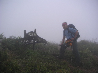 シャクナゲ平に行けば勝原からの登山者がいっぱいいるのだろうと思っていたら、誰もいなかった。通過して山頂に向かう。 少し下ると佐開コースと合流し、そちらから登ってきたというご夫婦と会った。林道は荒れて途中までしか車が入らなかったそうだ。休んでらしたので先に進むとポツポツ下山してくる人とすれ違う。勝原から登っている人たちのようだった。