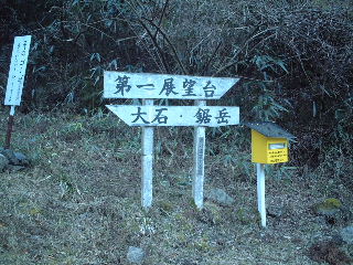 | 神谷分岐。しっかりした標識ですが、1993年(古っ!^_^;)の昭文社エアリアマップでは黒の破線です。今は赤線ルートになっているのでしょうか^_^; 第一展望台まで5分だそうですが・・・ |