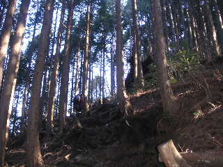 | 見上げると明るくなってきますが尾根に取り付くまで意外と長く感じます。 | |