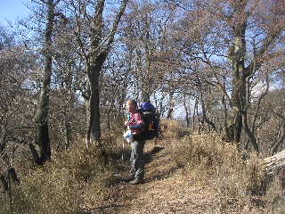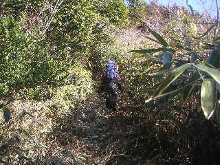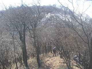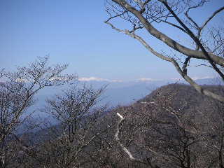 | 急登ですが、木の間からは南アルプスが見えてきました。落葉している今の時期なればこその景観ですね〜♪ | |