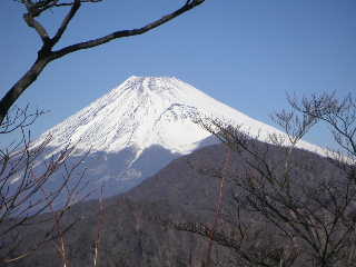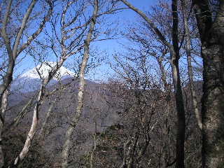 | だいぶ富士山が姿を現してきました。広葉樹は季節を感じさせてくれる素敵な樹林帯ですが、富士を眺めるにはやはり、落葉しているこの時期に限ります。 | |