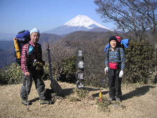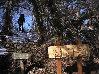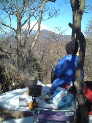 | H19年2月3日(土) 天気;晴れ Member.2人 【コ ー ス】(〜は歩、休憩時間含む) 須津(すど・大棚キャンプ場辺りのゲート)8:00〜愛鷹須津山荘8:27-30〜登山口8:35〜第一展望台9:50-10:04〜袴腰岳山頂11:10-12:15〜愛鷹山山頂13:13-14:00〜袴腰岳15:00〜第一展望台15:40-16:00〜須津(すど・大棚キャンプ場辺りのゲート)17:05・・・所要時間約9時間05分 |