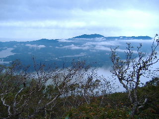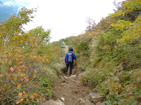 | 前日の谷地平〜東吾妻山のあと、二日目は磐梯山へ。磐梯山は家族と登った1986年8月が最初で昨年20年ぶりに再訪しました。しかし悪天候のため弘法清水で引き返しています。心残りでしたので今回も八方台でスタンバイ。曇り空でしたが21年ぶりの山頂。展望も何とか少し見ることが出来ました。紅葉はまだこれから。 |