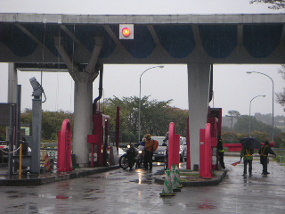 | 【一日目】 朝四時半の目覚ましと共に起きます。ツーリングのときは絶対に二度寝をしないトシちゃんです。 先ずは外の空模様を確認します。予報どおりの雨。 東北道、蓮田SAで一陣と集合し、その後西那須野塩原ICで降ります。 |