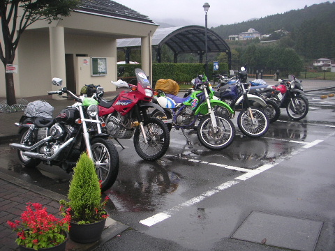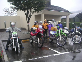 | そして近くの道の駅で全員集合! 雨に濡れても楽しいものらしい♪ 仲間っていいね! |