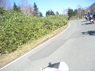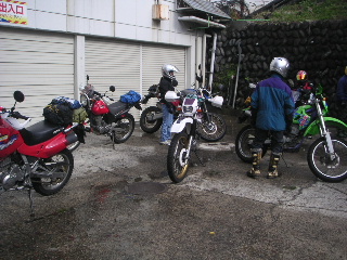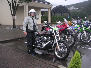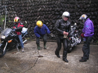 | 1日目の十二時間かけたツーリングはこうして終わり・・ って、いやいや、いろいろあったんですって! * 雨のためデジカメは使えなくなってしまうし、 カーブの多いトンネル内でバタバタと3人転倒してしまうし 大変でした。 路面が雨で濡れていたせいかと思ったら オイルがこぼれて(まかれて?)いたらしいです。 * カーブの多いトンネルも珍しいですが、 暗い中にオイルとは バイクにとって命取りの事態です。 幸い対向車がなく、 即座に出入り口に仲間が行き車をストップ! お陰で大事には至らず、 ケガもたいしたことなく、 バイクもダメージがあまりなく 本当に良かったです。 |