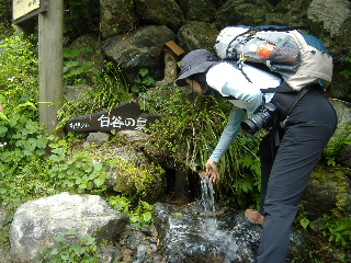| 登山口に白谷の泉。ネコさん曰く「美味しい!」と。 私は体調イマイチの時は生水は飲まないようにしています^_^; |