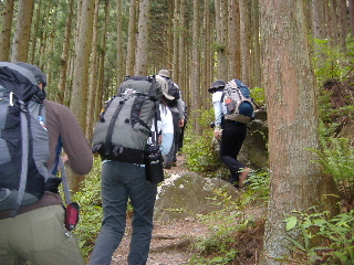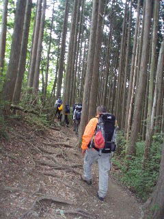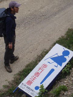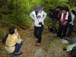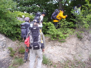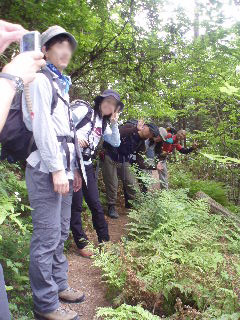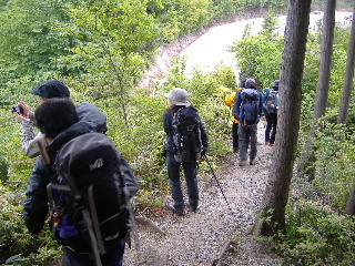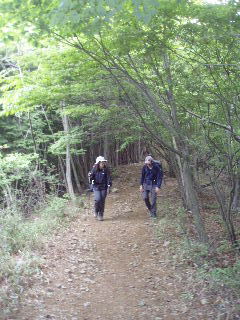 | トシちゃん血が騒いでいるようです^_^; ヘタってよろめいているだけ?(^^ゞ 林道からは沢を離れ山道へ。 |