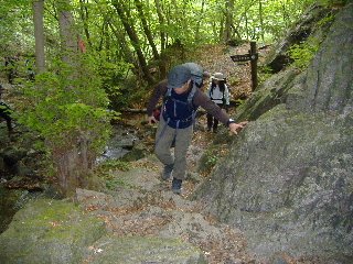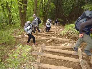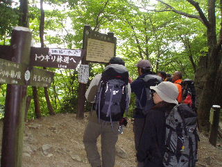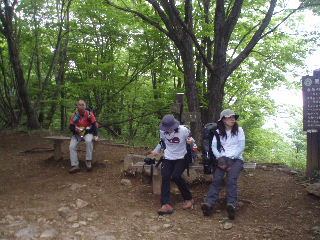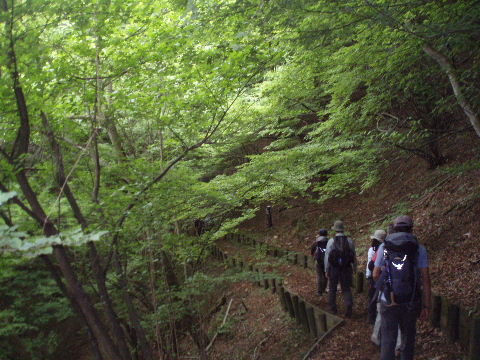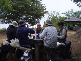 | H21年5月16日(土) 天気;曇り Member.8人(かいねこさん、親方さん、heppocoさん&heppoco隊長さん、まゆ太さん&¥さん、トシちゃん&sanae) 【コ ー ス】(〜は歩、休憩時間含む) さわらびの湯8:35〜有間ダム8:50〜登山口9:03〜大名栗(おおなぐり)線林道10:20〜岩茸石(いわたけいし)10:32-37〜権次入(ごんじり)峠11:00-05〜棒ノ嶺山頂11:18−13:05〜権次入峠〜岩茸石〜林道〜さわらびの湯15:13(入浴800円) |