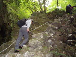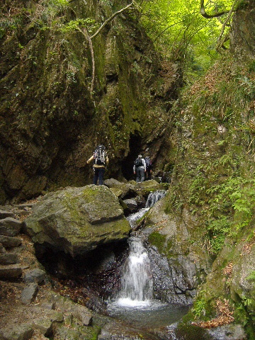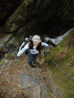 | 階段状のところは鎖がついています。この裏手(左側にいろいろな滝があるのですが、今回はなんとなく通り過ぎてしまいました(^^ゞ そちらで沢登りをしている人もいるのですがこの日は見かけませんでした。 | ||||