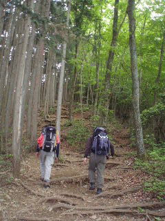 | 疲れているとこのさわらびの湯までの登り坂がつらいようです。この日は曇りがちでかえってよかったです。 | ||||