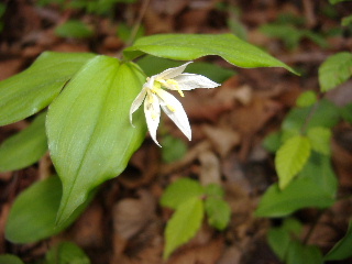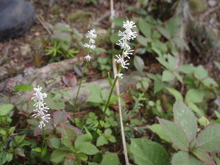 | カンアオイ(寒葵)は葉が葵に似ており、冬も枯れない事からその名がついたのだそうです(一部には枯れるものもあるらしい)。 徳川家の家紋が三つ葉葵ですが架空のもので、フタバアオイ(カモアオイ)を図案化したものという説です。同じウマノスズクサ科になります。 そしてこれは何?と突如出現した細い白い花の群生に首を傾げます。 |