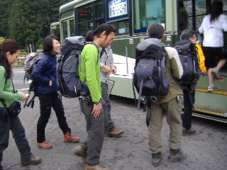| 8時18分着のバスで全員到着。今回は体調イマイチというメンバー数名^_^; それでもしっかり集まるのはこのゆるゆるサイテイなればこそ(^^♪ | ![]() |