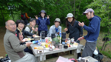 | 夜中の2時半過ぎにさわらびの湯に到着。一寝入りして7時ごろ起床。寝ぼけ眼で片付けていると委員長より「全員集合、これから向かう」というメール。準備と朝食を済ませメンバーを待ちます。 | ||||