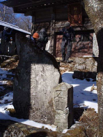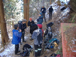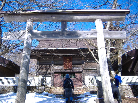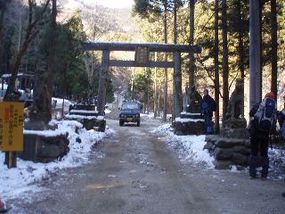 一の鳥居。ここでアイゼン脱着。 アイゼンは外したら直ぐにちゃんとしまいましょう。 |