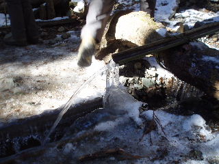 | 周囲は氷柱上に凍っていますが、しっかり流れています。 | ||||
