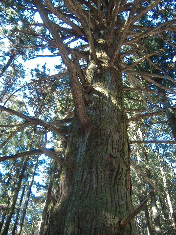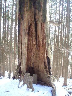 | 杉の命を称えているのか、空洞の真ん中に石柱が建っています。 | ||||