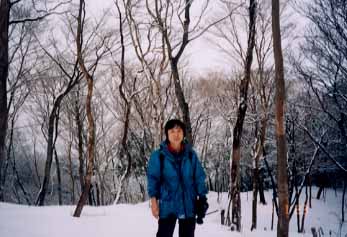 さっきの分岐点に戻り、先の道を捜すと倒木の向こうに道がある。そこからは順調になだらかな登山道。途中道筋とは違う方向に赤いテープの木が続いている。山頂かと思い行ってみるが違った。引き返し先に行くとまた足跡が散らばっている。登山道を辿ったが又道がない。ではと、山頂かと思われる方を選んだが何やらの塔が立っているだけ。標識はない。そこからはっきりとした登山道がある。今回甘く見た私は小さく載っている地図こそ持ってきたが磁石は持って来なかった。とりあえずしっかりした道筋を選び急な下山道を下った。「んっ?」やはり途中から曖昧になってきた。戻る途中、伊藤さんの外れて落ちていたアイゼンを発見。私のもなくしているのに気がついた。