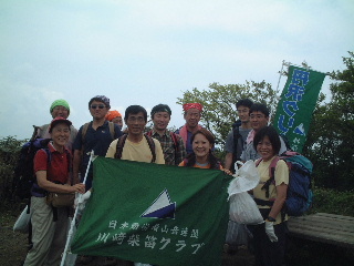 登山道に入るとゴミはほとんど無かった。もっともペースの早い我らの先頭集団がどんどん拾い集めていたようで、成果を見せる蒲原さんがちょっと得意顔。さすが若手のエース!