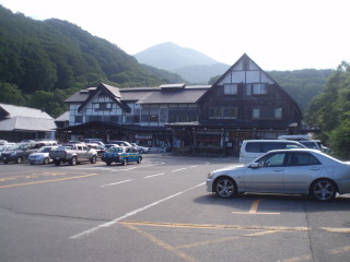 | 酸ヶ湯温泉が見えてきました。 愛車も見えます。 |