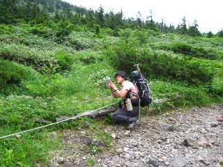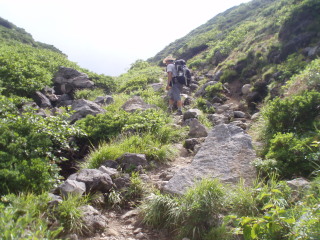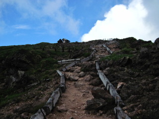 | いよいよ大岳へ最後の登りになります。いままで気楽に歩いてきましたが、ここがチトつらいです^^; ゆっくり、ゆっくり登っていきます。 | ![]() |