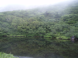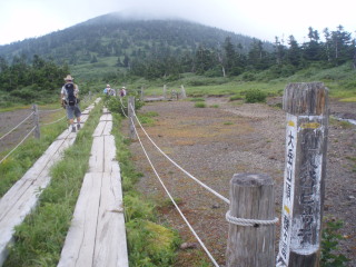 1時間ほどのんびりして下山。ガスが晴れるのを期待しましたが、せいぜい赤倉岳方面の稜線が見えたくらいでした。 |