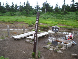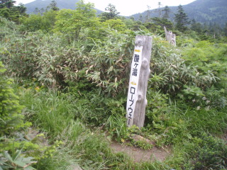 | 八甲田清水(辰五郎清水)の先にすぐ小岳、高田大岳分岐があります。 | ![]() |