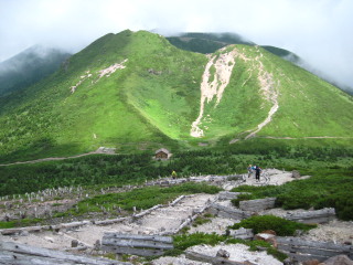 それでも多くの人に登られている八甲田山。登山道はしっかり整備されて。 夏の濃い緑がきれいです。冬は長いこと雪に覆われているでしょうから正に短い夏を謳歌しているような。 |
