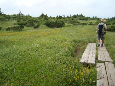 | 東北四日目。前日に青森ねぶた祭りを楽しんだ後の移動でしたが登山口の酸ヶ湯までは近いので楽でした。本州最北端の県の百名山、今回で二回目になります。前回は秋の紅葉が素晴らしかったのが忘れられません。今回はお花を楽しみながら同じコースをのんびりと辿りました。 | ||