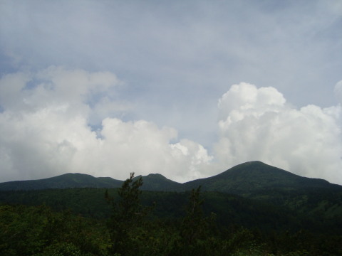 | す〜っと冷たい風の吹く場所に出ると目の前に南八甲田山が眺められました。まだ行ったことはありませんが、火山活動が既に終わり、平坦で湿原が広がっていると書いてあります。 今回そちらにしようか迷ったのですが、今回はこのあと五所川原の立倭武多を見に行くため近い方にしました。 |