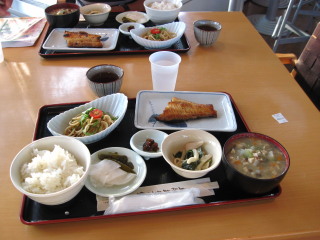 | この立倭武多の館の展望ラウンジでの夕食。 けの汁和定食(1050円) ※けの汁とは津軽の人々に親しまれる郷土料理。 だいこん、にんじん、ごぼう等の野菜類と、 ふき、わらび、ぜんまい等の山菜類、 油揚げ、豆腐、凍み豆腐などの大豆製品を基本的な材料としていて、 これを刻んで煮込み、みそやしょうゆで味付けした素朴な料理。 ホッケの焼き魚や和え物、漬物、サラダ?など付いた 郷土料理。こうして食べられるのは嬉しい♪ ![]() |