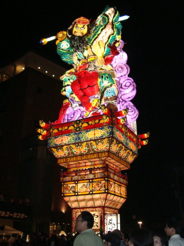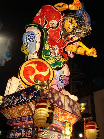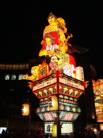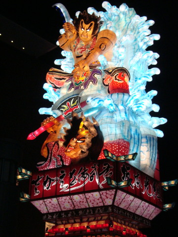 | このねぷたの歴史は明治初期のころ。 木材、水産の商業の町として栄え、 巨大ねぷたはそれら豪商、大地主の力の象徴として 高さを誇るようになり、既に20メートルを 超えるものがありました。 その後時代の流れで小さくなったり、 やり方も町それぞれバラバラだったそうです。 今のように立倭武多として復活したのは平成8年。 その後市が支援することになり、平成10年から 毎年新作を一台製作して、この大型立倭武多は 毎年3台運行される形態になりました。 ![]() |