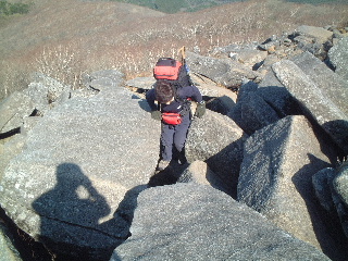 充分展望を楽しんで下山。ずっと貸切状態の山頂だったが、下山すると次々に登山者がやってきた。その度に待ったり、話をしたりするものだから、時間がかかった。 |