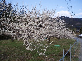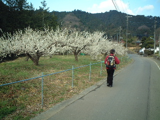 | 道なりに山方向へ向かうと辺りは梅が満開です。 | |