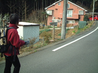 | 途中で右折し、早朝静かなあきる野市の民家の中を歩いていくと角に標示がありました。 | |