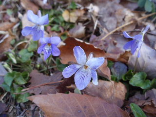 | そのまままっすぐ行きそうですが、ここで右折の標識がありました。 登山道沿いには早くもタチツボスミレがいっぱい咲いてます。でも今回は花の少ないコースでした。 |