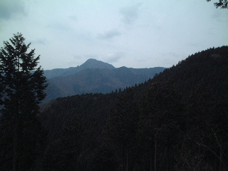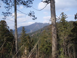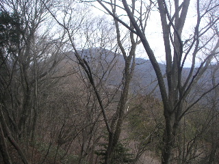 | 登山道は公園の裏手につづいており、緩やかに少し下るような感じです。 木の間からは三頭山方面が見えました。 |