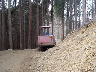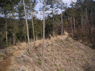 | 下に林道があり、横切っています。自然な感じで登山道が続いていますが、右下のほうは公園でも作るのでしょうか? ↓ |