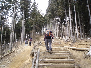 | 少し先に登ると大岳山が見えます。今日は富士山が見えたでしょうか?春霞でどうだったか・・・? | |